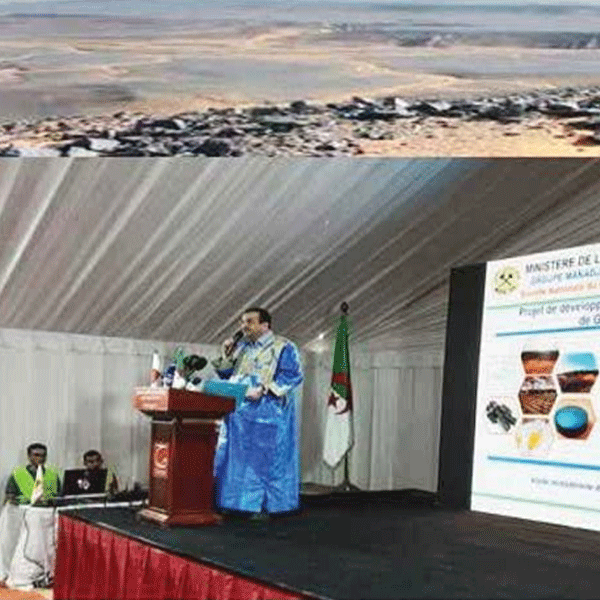 Fruit d’un partenariat algéro-chinois, supervisé par l’entre- prise nationale de fer et d’acier FERAAL, le projet de Gara Djebilet permettra, outre de soutenir la métallurgie et une autosuffisance en fer, de générer de l’emploi et le développe- ment local du sud-ouest du pays.